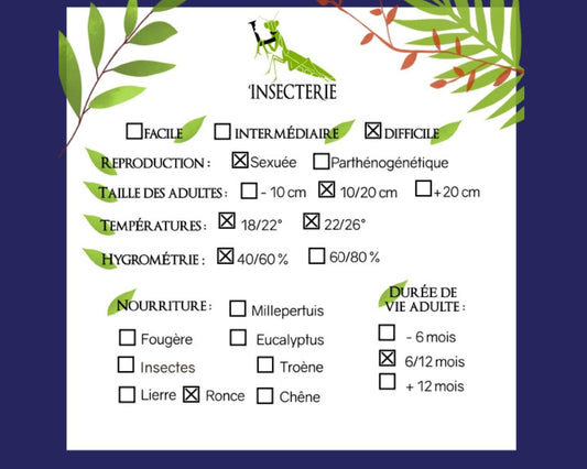 Phasme - Lobofemora scheireiPrix habituel Du €18,90 EURPrix habituelPrix unitaire parPrix soldé Du €18,90 EURÉpuisé -