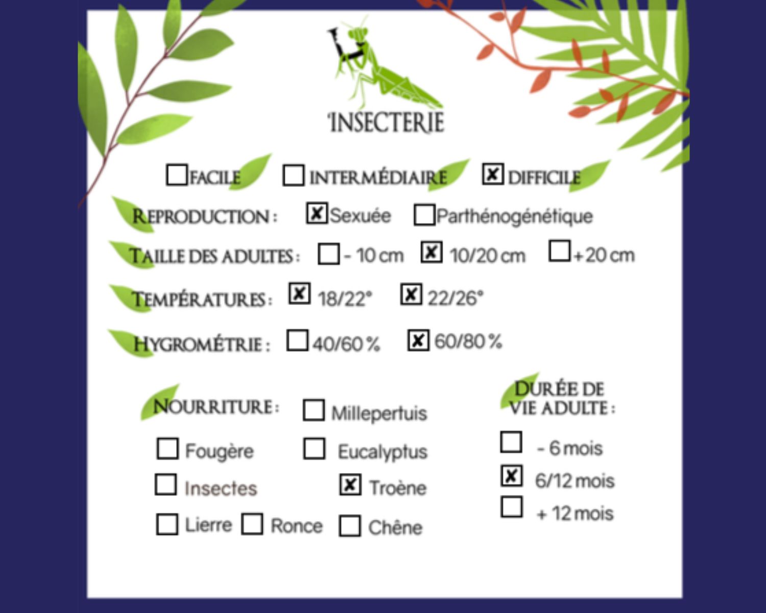 Una magnífica especie de fásmidos originaria de Filipinas que mide entre 10 y 20 cm en la fase adulta.